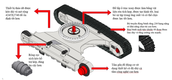 - Hộp cần lớn, kết cấu tấm dày, các bộ phận chịu ứng suất chính có thiết kế tấm gia cố, độ tin cậy cao hơn;