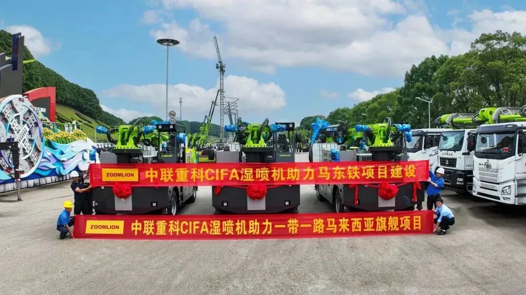 Cùng với những thành tựu đó Zoomlion đã bàn giao ba chiếc máy phun ướt "Tiên phong số 1" đã xuất xưởng tại Khu công nghiệp Lugu của Zoomlion, giúp ích cho việc xây dựng Đường sắt Bờ biển phía Đông của Malaysia. Đây là dự án hợp tác kinh tế thương mại lớn nhất giữa Trung Quốc và Malaysia cho đến nay.